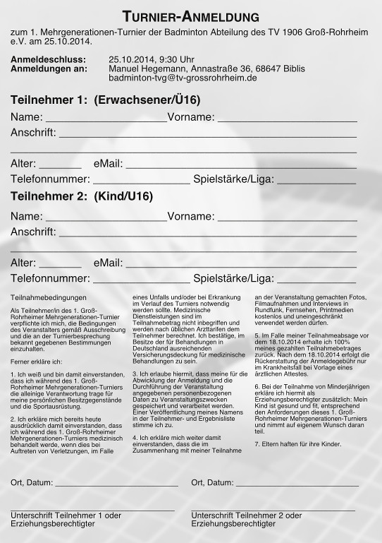 Die Doppelpaarungen bestehenen jeweils aus einem U16- und einem Ü16-Spieler.