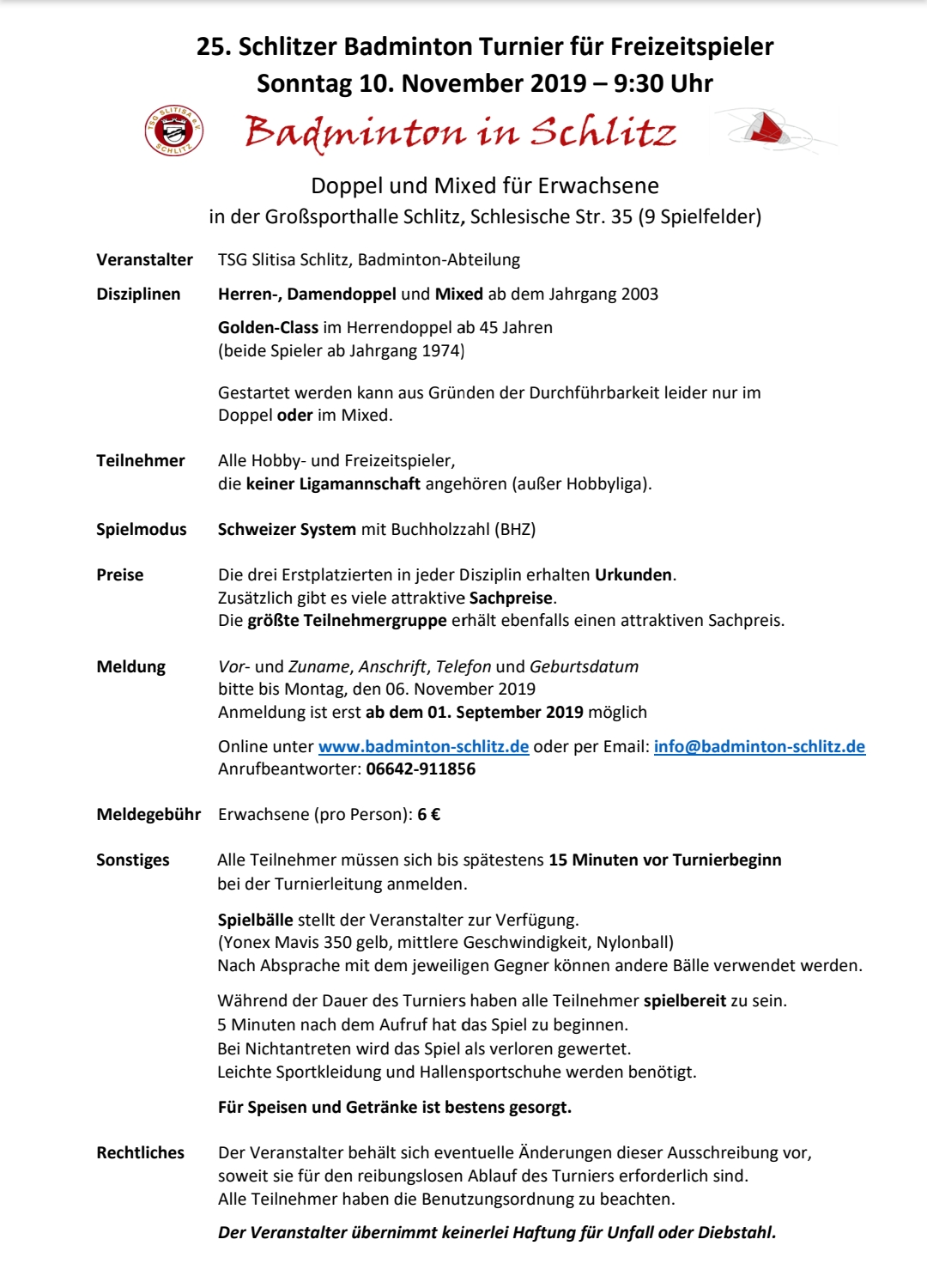 25. Schlitzer Badminton-Turnier für Freizeitspieler